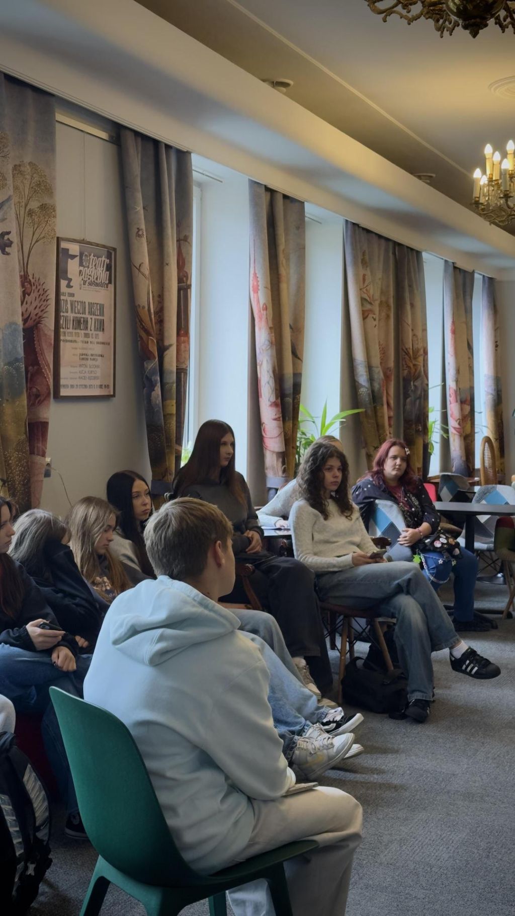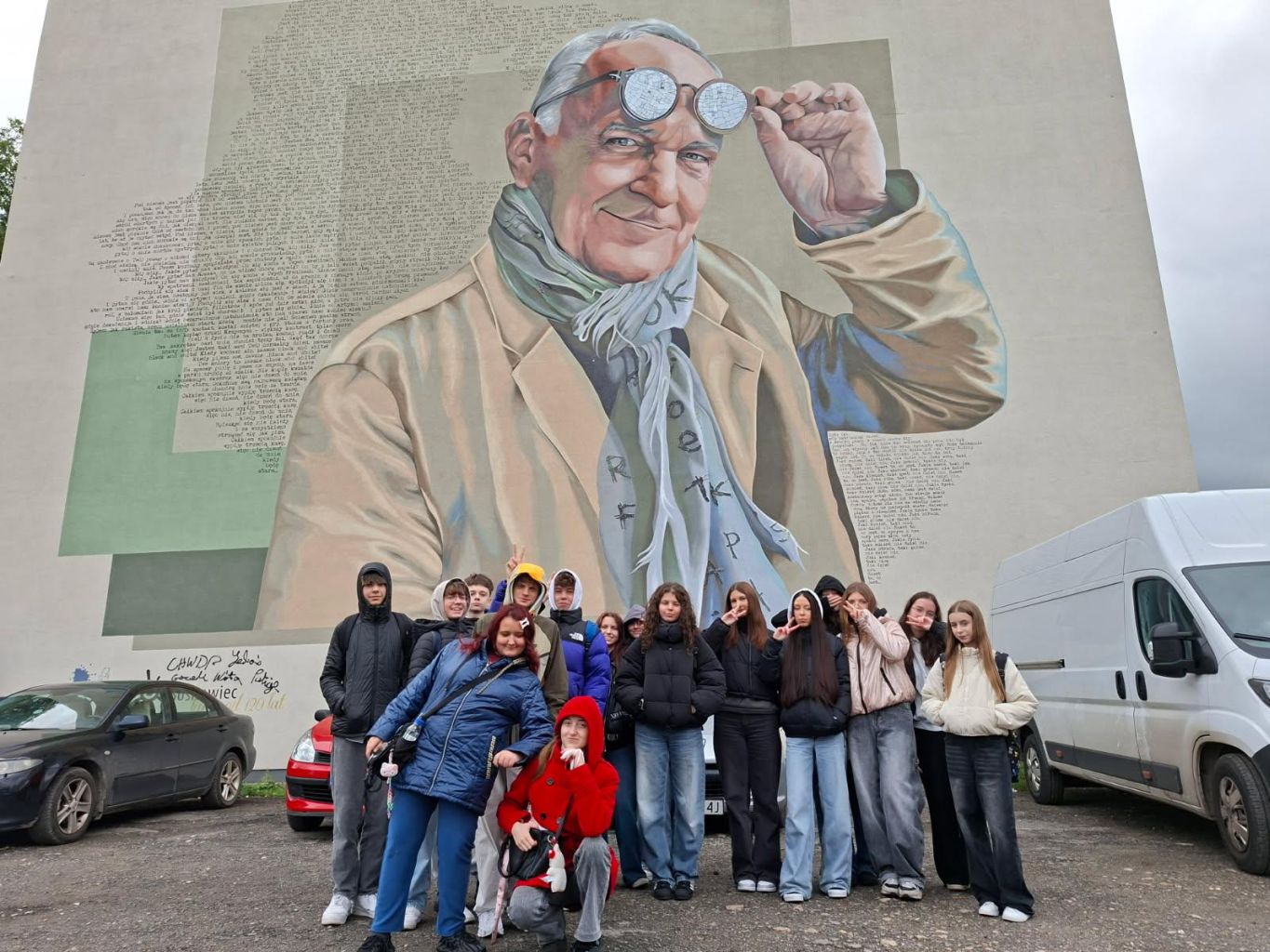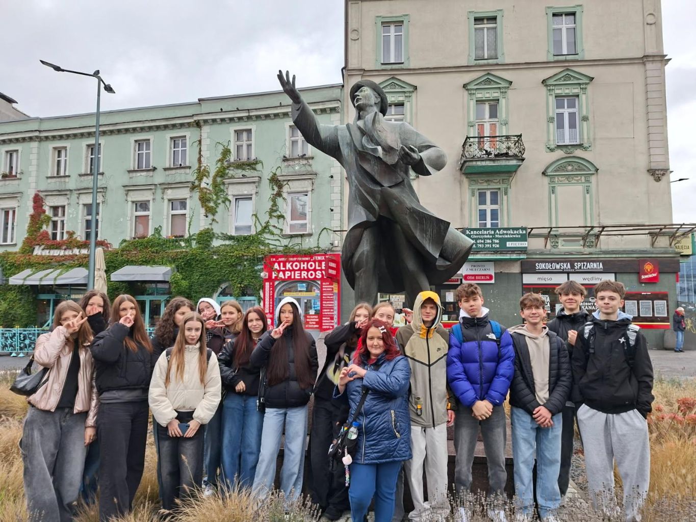 Klasa językowa 1BC, realizująca zajęcia Pracownia Sztuk Scenicznych, wraz ze swoją mentorką – Panią Agnieszka Bieńkowska – wyruszyła do Teatr Zagłębia w Sosnowcu, gdzie czekała na nich… próba generalna spektaklu „Brzydkie kaczątko”. Było trochę magii, trochę tajemnic i… dużo kulisowych niespodzianek, bo zajrzeli tam, gdzie normalnie wzrok widza nie sięga. Na koniec – spacer śladami wielkich ludzi Sosnowca i wspólne zdjęcie, które już zawsze będzie przypominać, że teatr to coś więcej niż scena – to podróż, spotkanie i inspiracja.