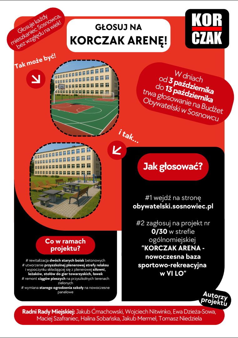 Głosujcie na KORCZAK ARENA na stronie www.obywatelski.sosnowiec.pl