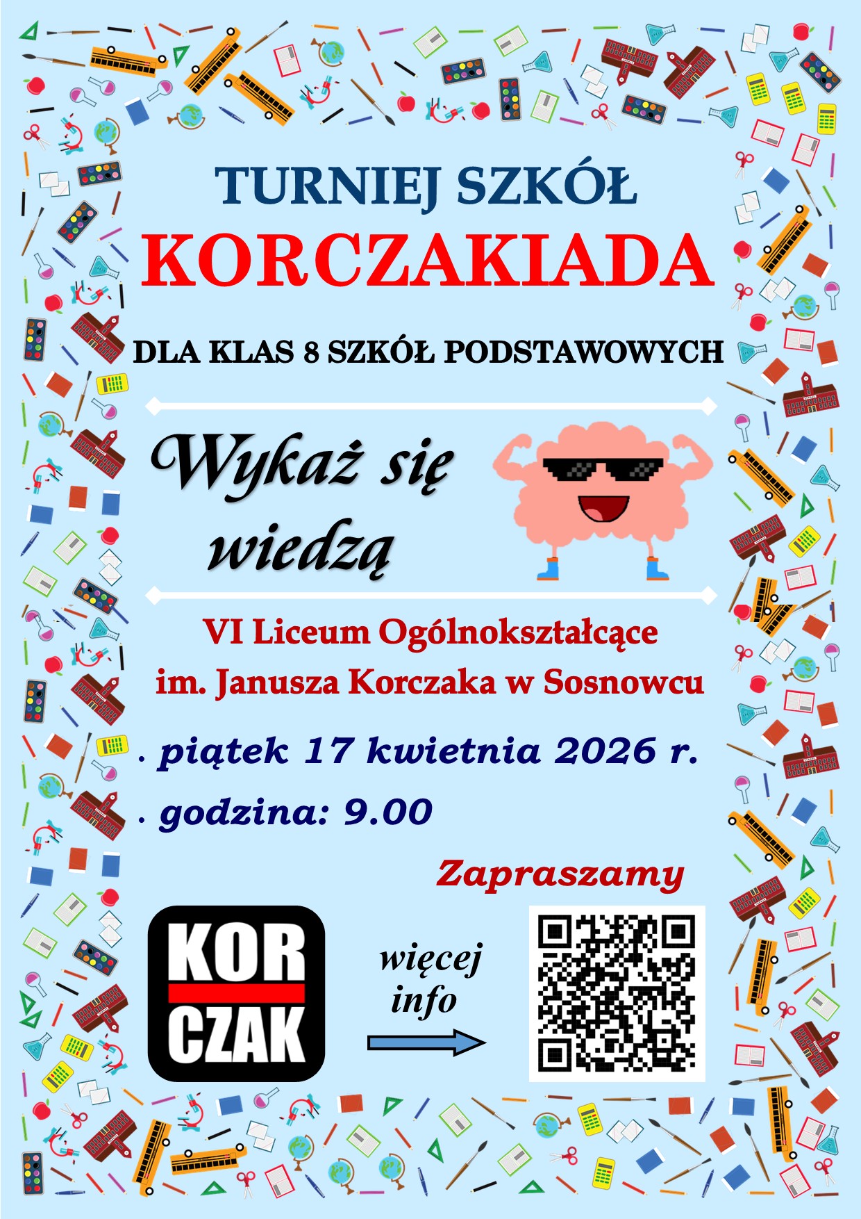 Turniej odbędzie się w piątek 17 kwietnia 2026 r. o godz. 9:00 w VI Liceum Ogólnokształcącym im. Janusza Korczaka w Sosnowcu.