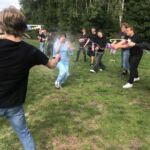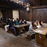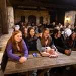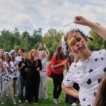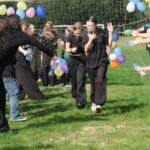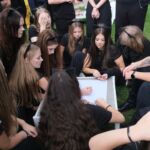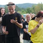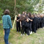 - Z pochwalną pieśnią na ustach – na cześć naszego liceum, dotarli do ośrodka. Tam czekał na nich wyjątkowy moment – powitanie przez maturzystów, kocie uszy i wąsiki oraz… szpaler klas czwartych! To właśnie jego pokonanie było największym wyzwaniem i symbolicznym przejściem otrzęsin – zgodnie z naszym wieloletnim korczakowskim zwyczajem