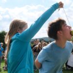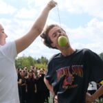 🍏 jedzenie jabłka wiszącego na sznurku,