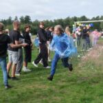💧 podawanie nad głowami nasmarowanego olejem balonu z wodą,